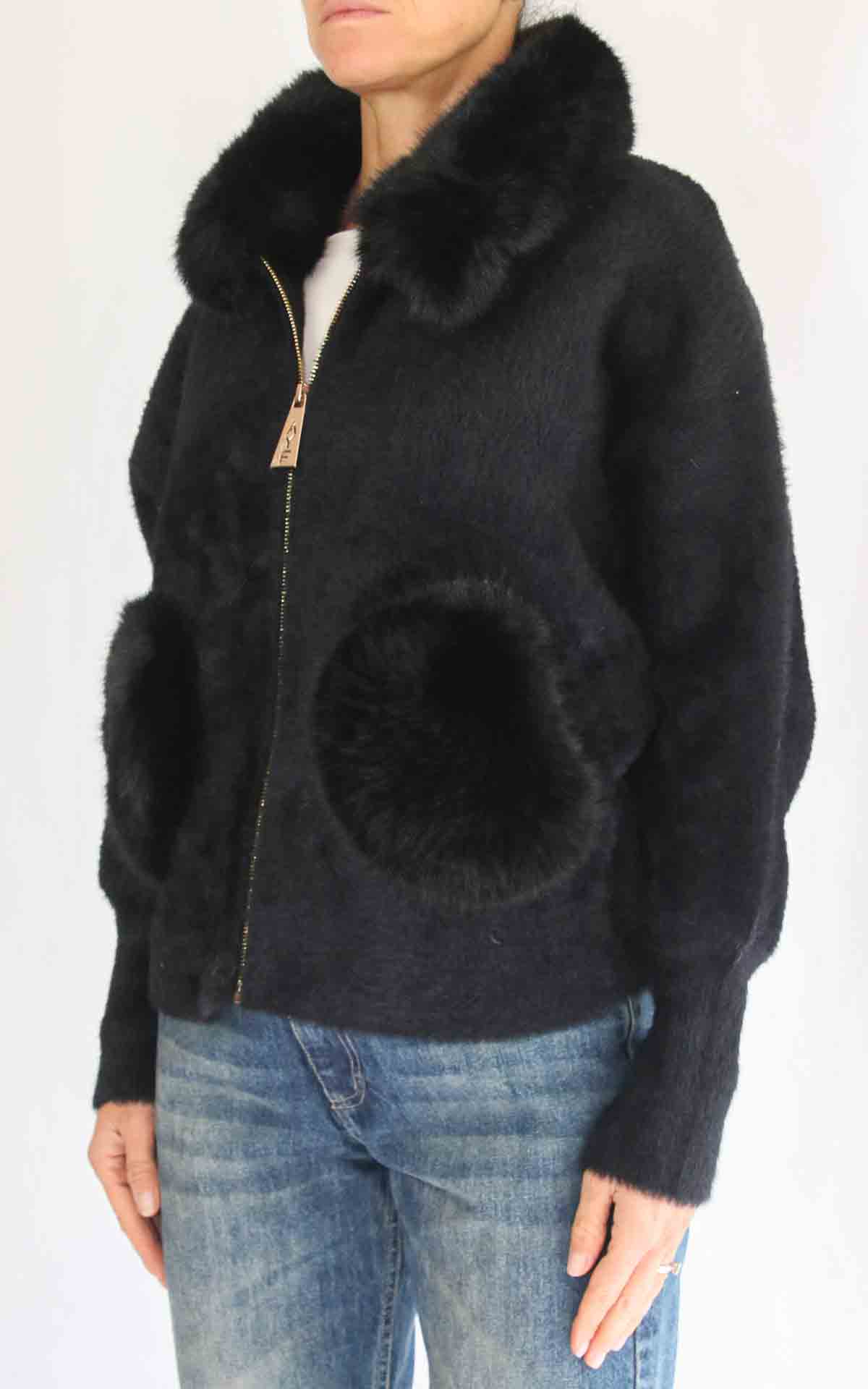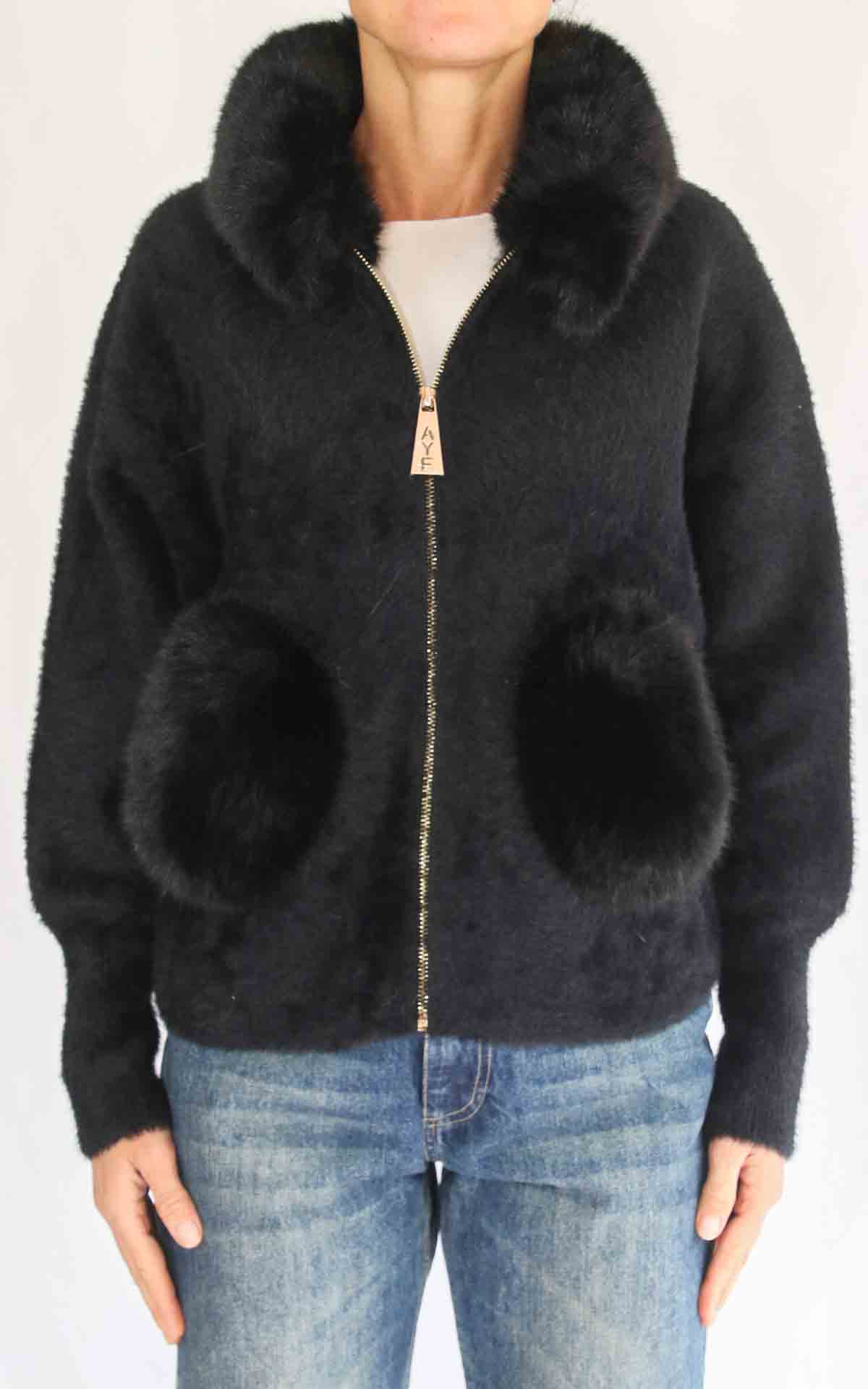AYFËE – Giacca con collo pelliccia – NERO