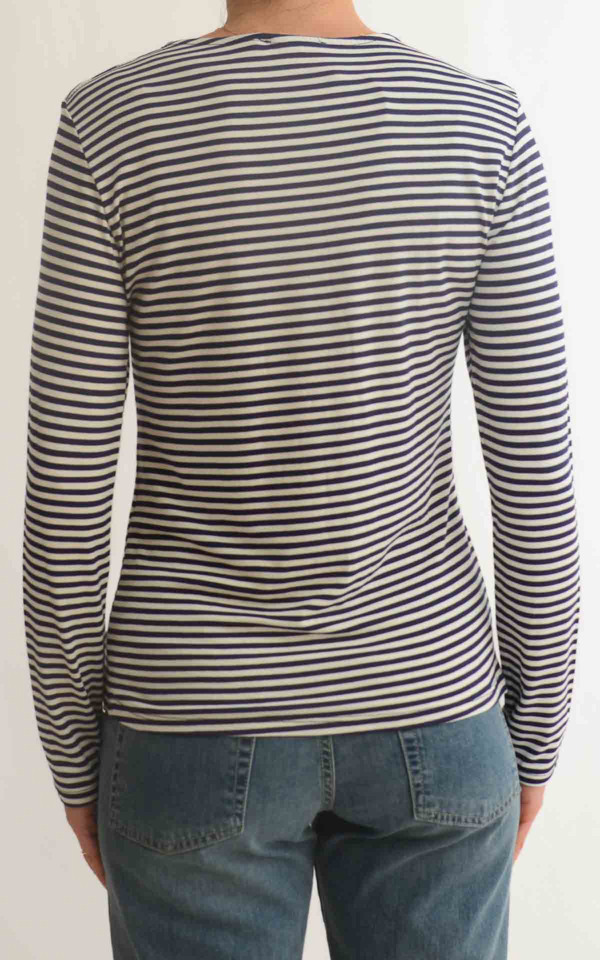 INITIAL – T-shirt riga – BIANCO/BLU