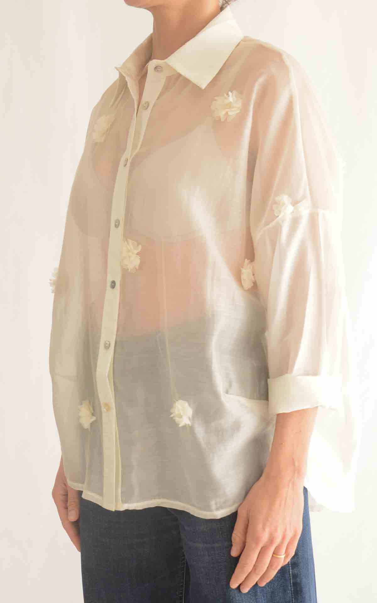 SUSYMIX – Camicia fiori applicati – BURRO