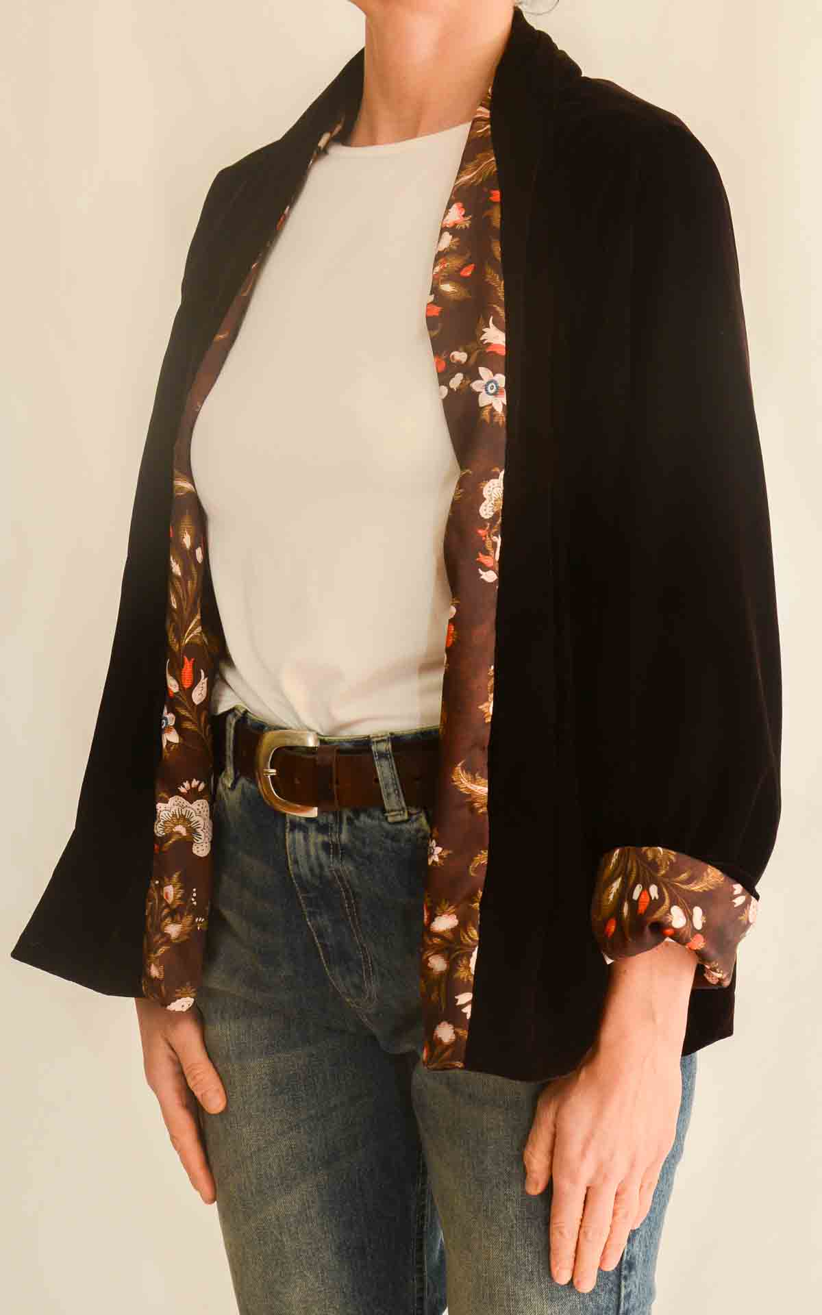 WU’SIDE – Kimono corto velluto rasato – MORO